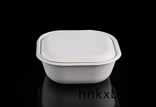 一次性甘蔗漿餐具(ju) 可(ke)降(jiang)解紙漿(jiang)20cm方椀巨(ju)椀外(wai)賣盒